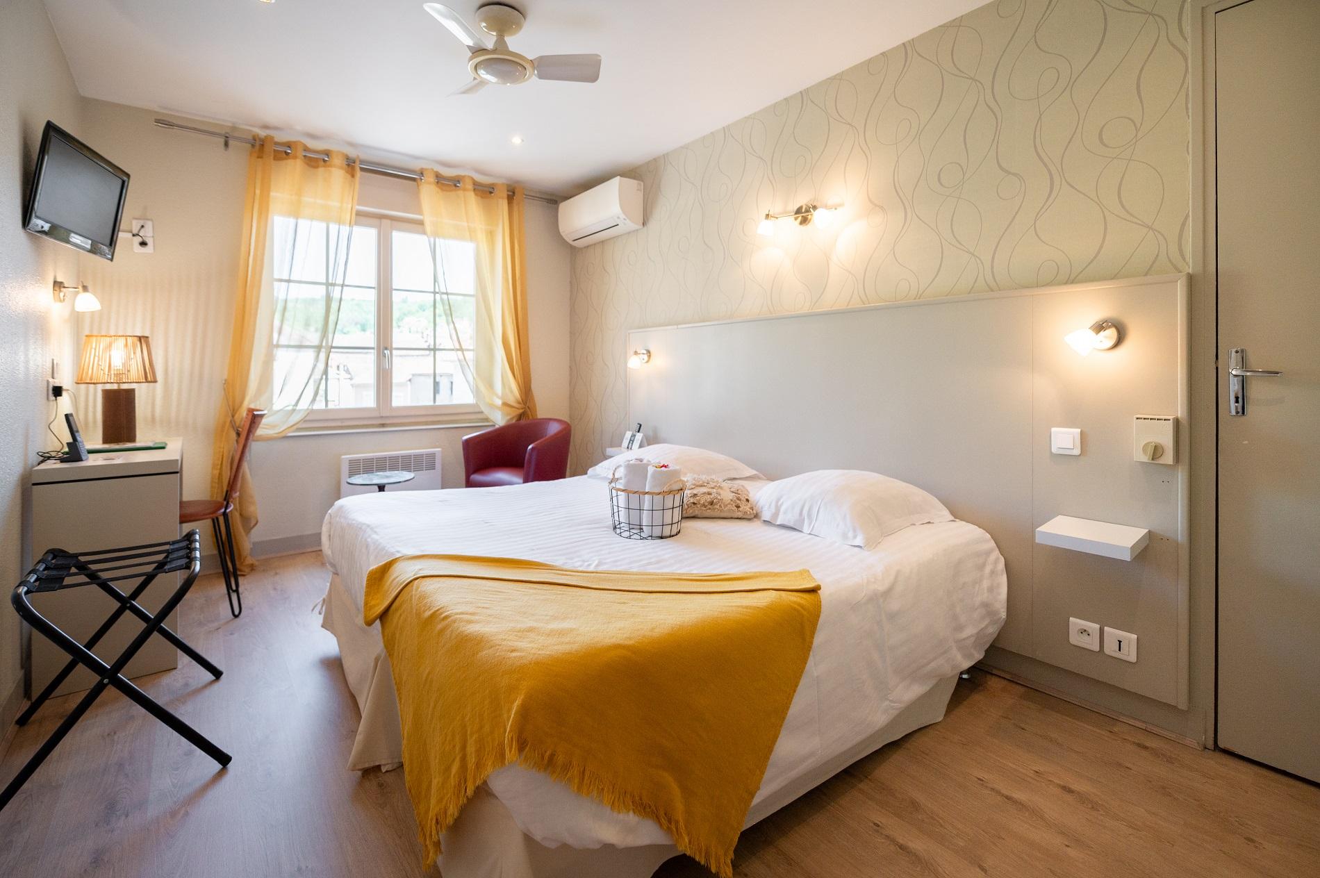 Chambre climatisée avec lit double 140*190 - Salle de bains avec douche ou bain & WC - TV écran plat, minibar & plateau...