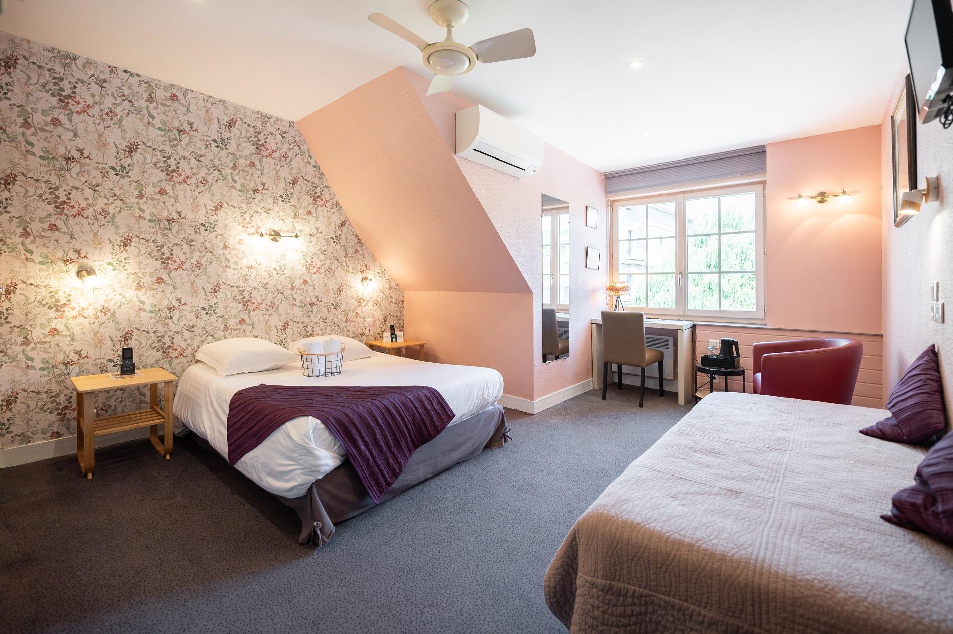 Chambre climatisée avec 1 lit double 140*190 et 1 lit 1personne 90*190